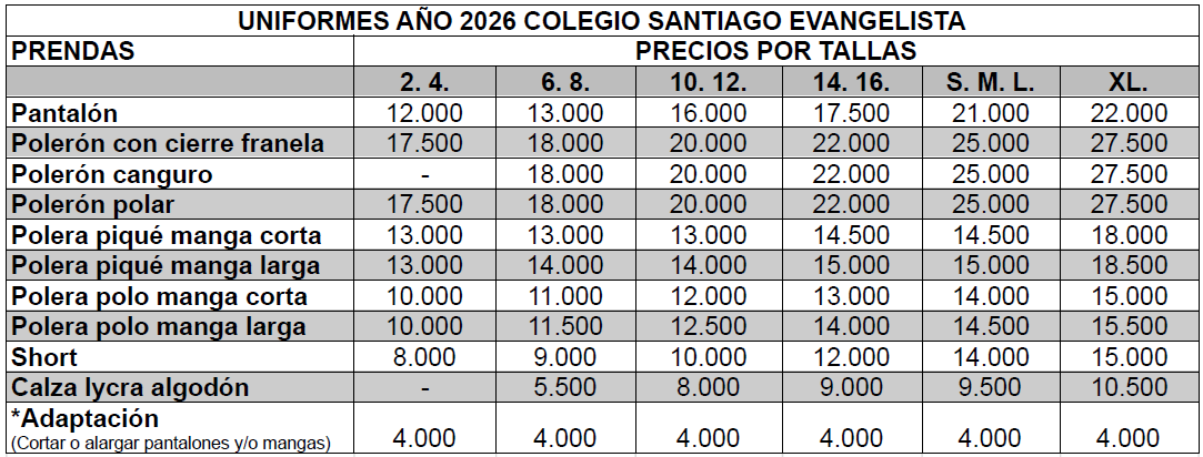 UNIFORMES AÑO 2025 COLEGIO SANTIAGO EVANGELISTA